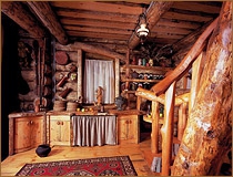 - Wood used to manually build blockhouses is treated only manually with hand knives. This makes it possible to preserve the natural protective characteristics of wood and its natural appearance to the maximum extent. As a result, a wooden house looks natural from the inside as much as possible. The wooden house interior is unique as the pattern of the structure of each tree is individual. The interior finishing works of a blockhouse are carried out by using environmentally friendly natural materials based on bee wax and oils.