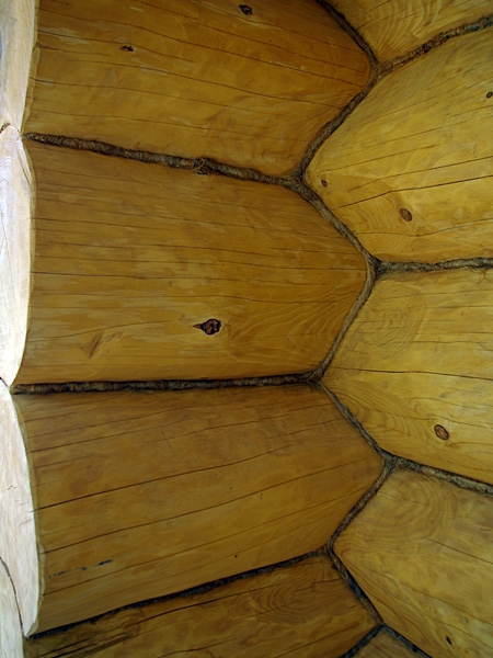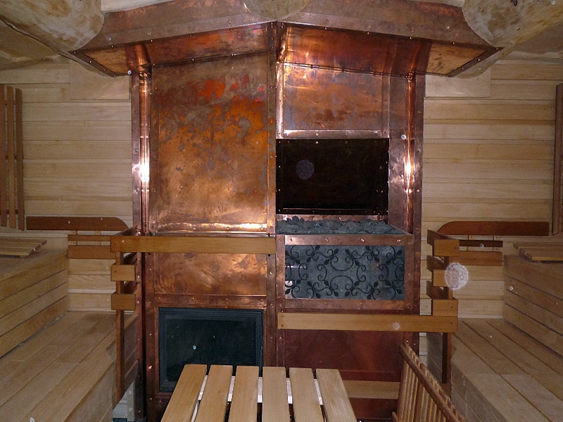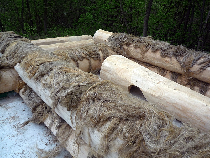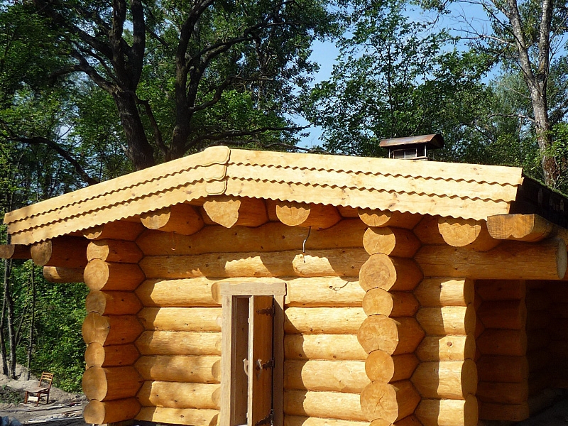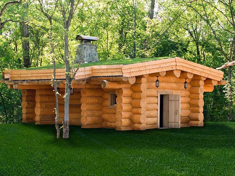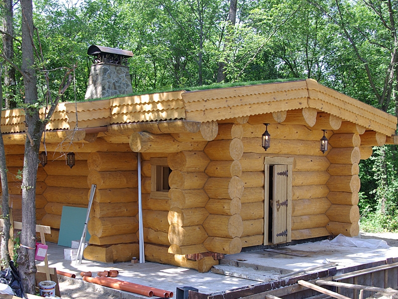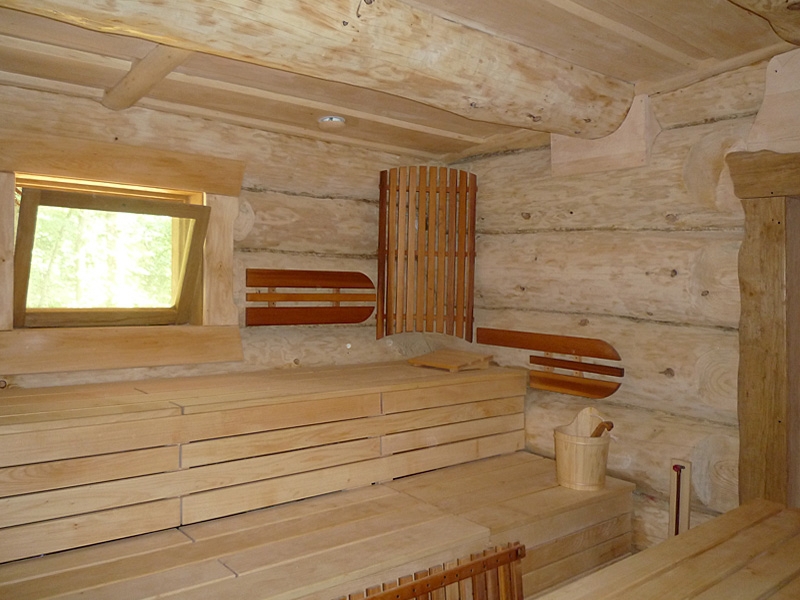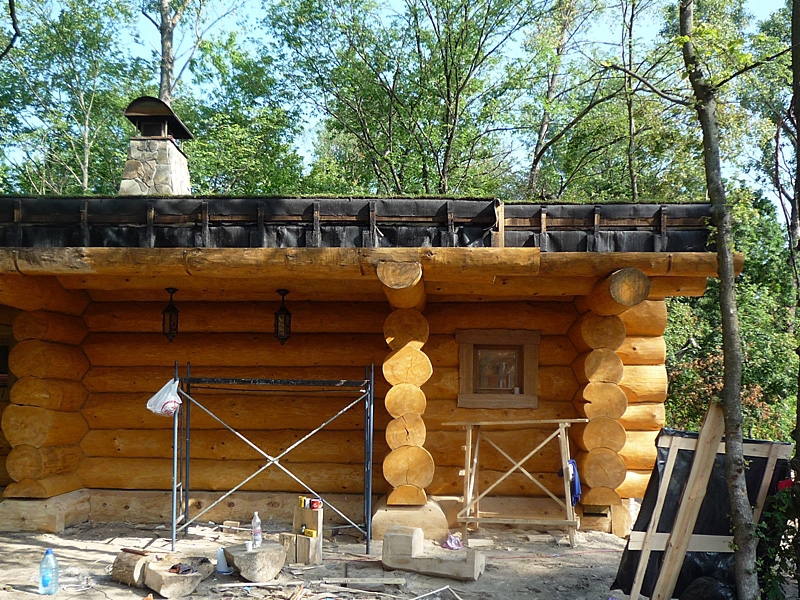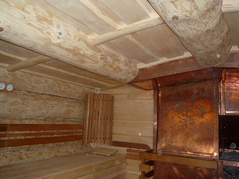 A unique hand-cut sauna from 50-60 cm in diameter. Grassy roofing, wooden gutters. Joinery - solid oak, handmade copper firebox. Joint work with A.Ignatenko (TM "Module")