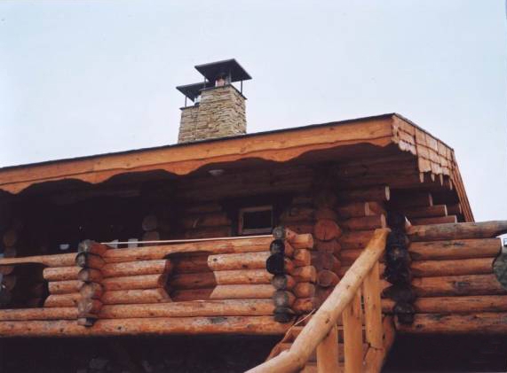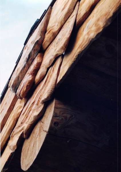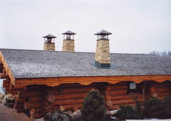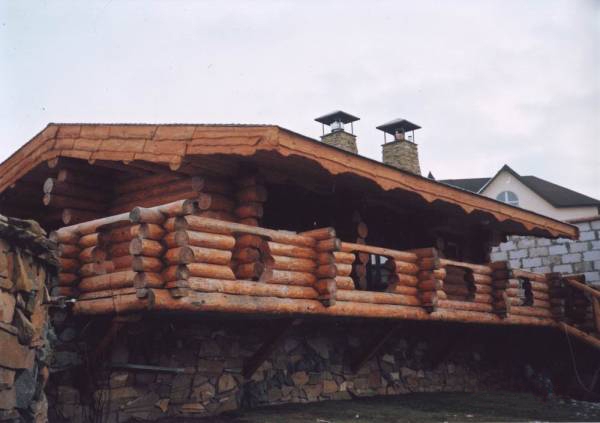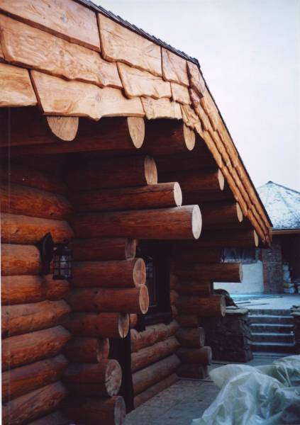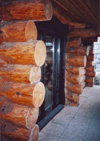 Spacious bath for a large company. The average log diameter is 35 cm. The roof is made of shingle.