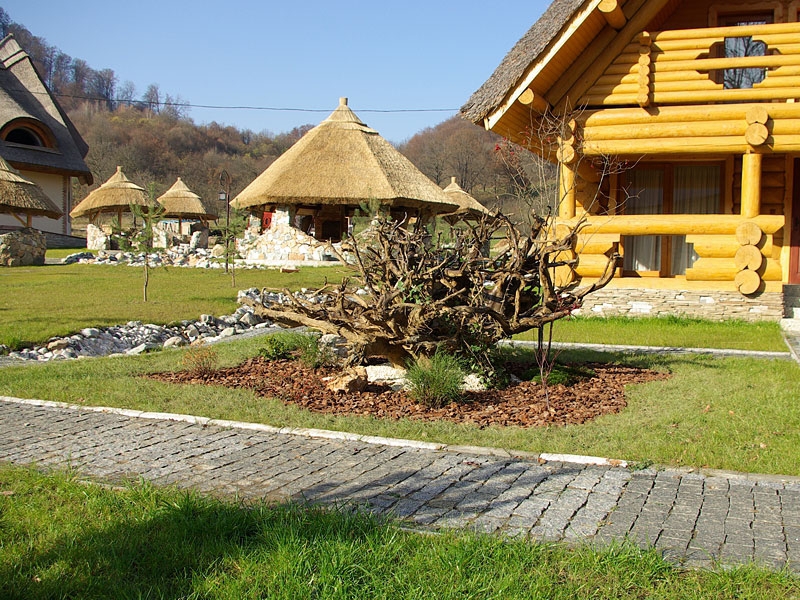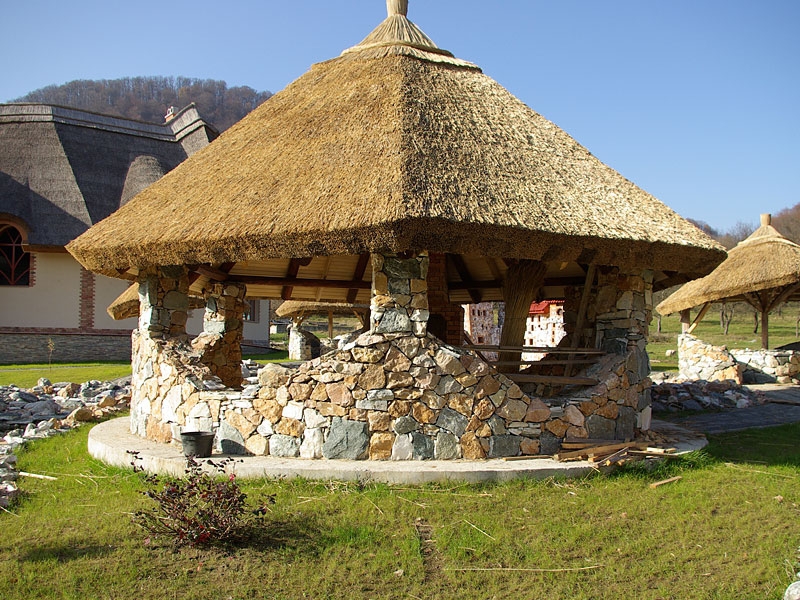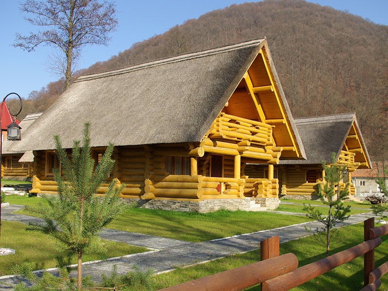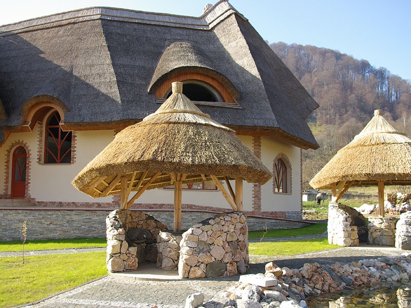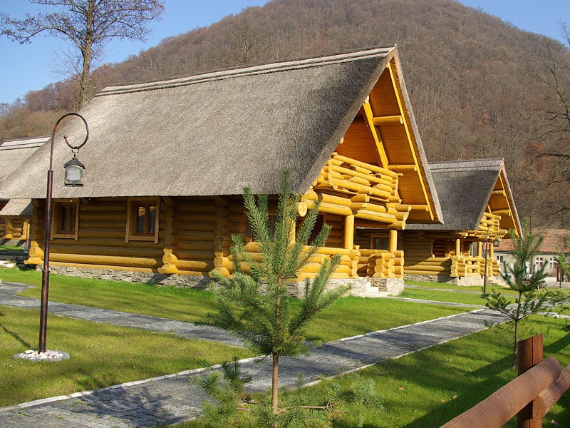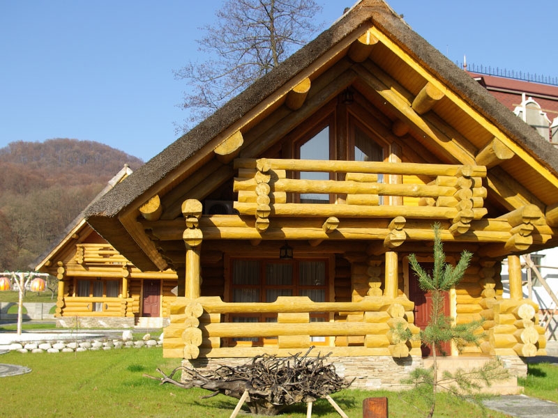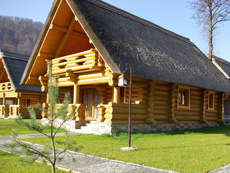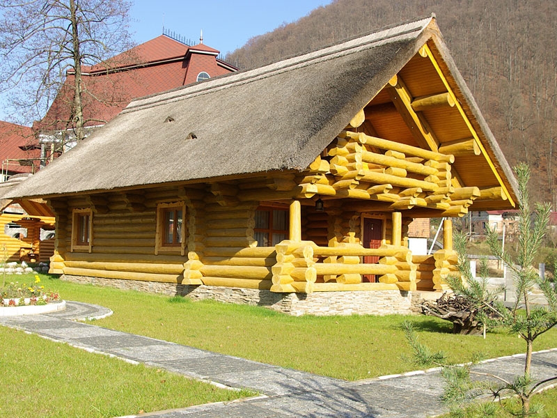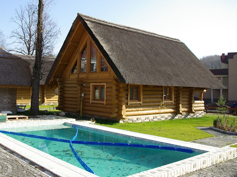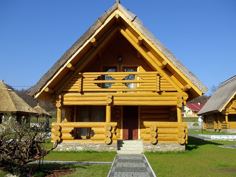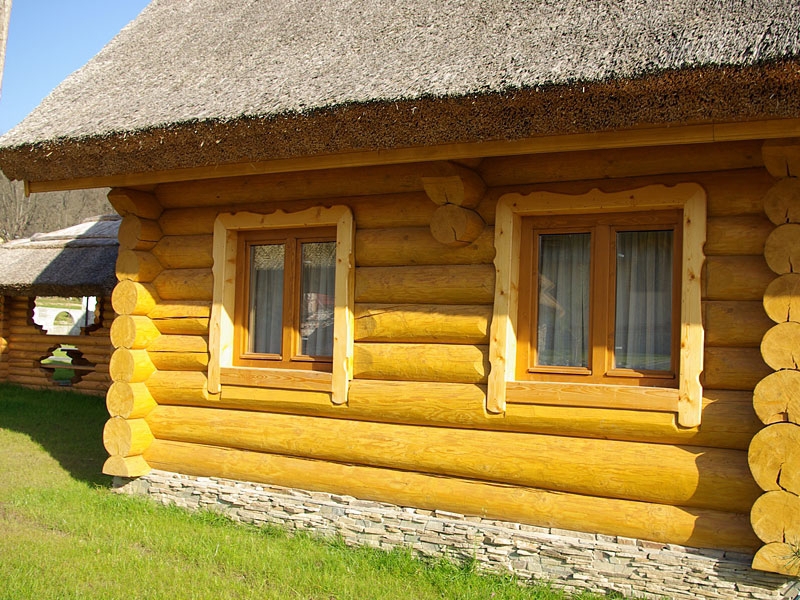 Holiday home for one family. The average log diameter is 35 cm. Reed roofing.