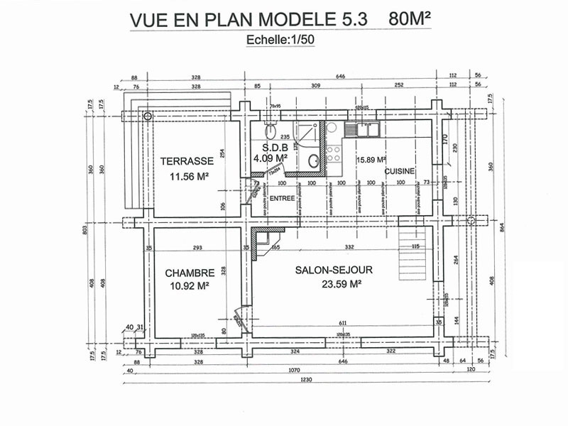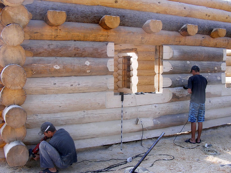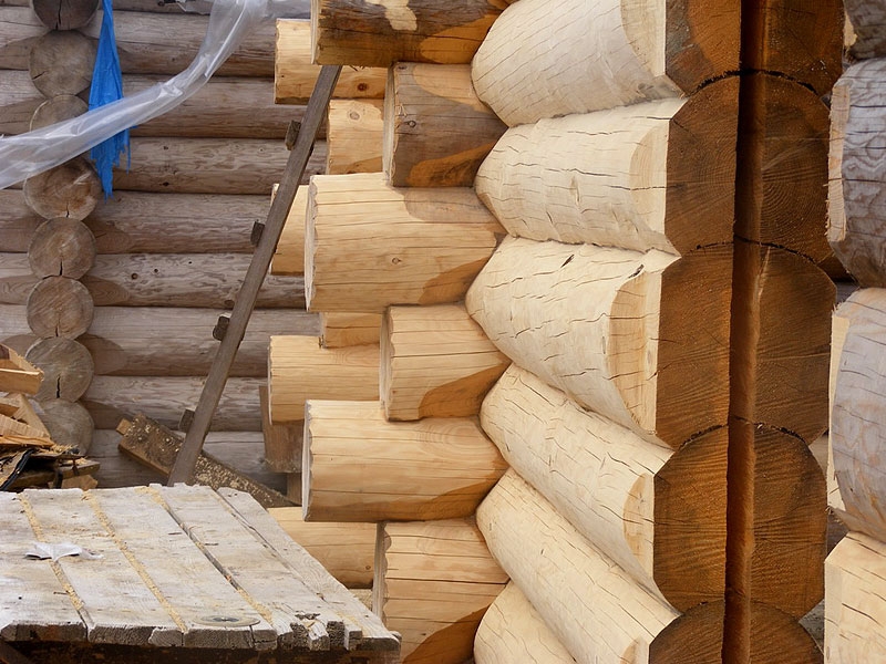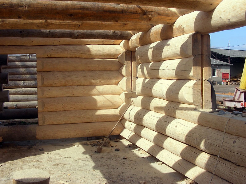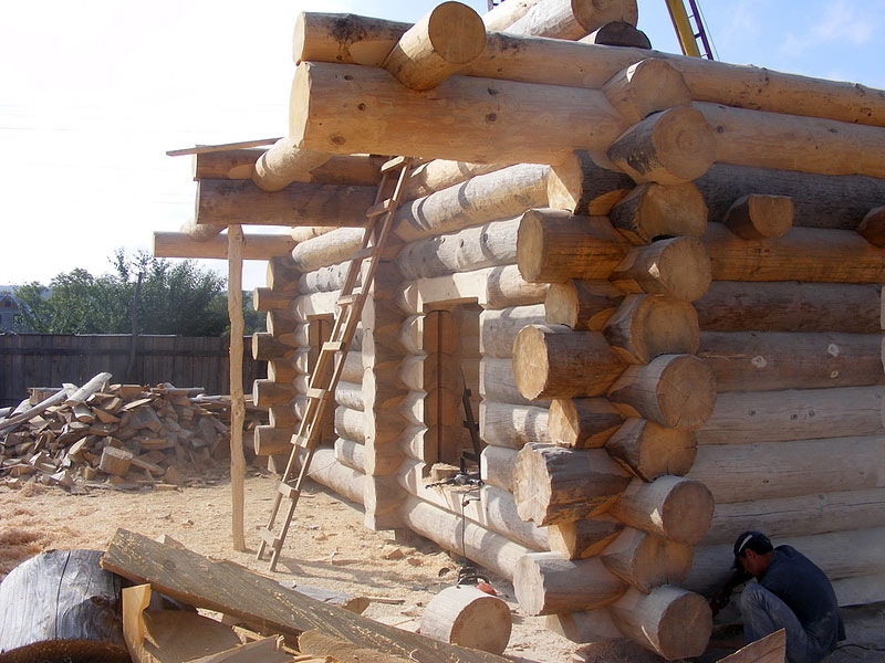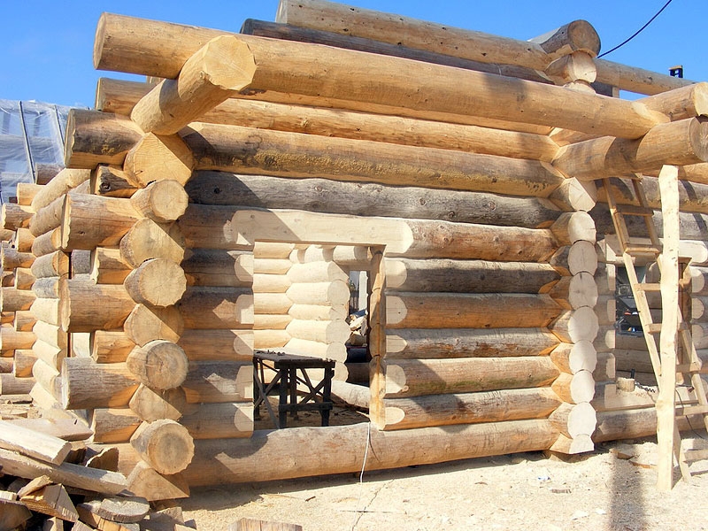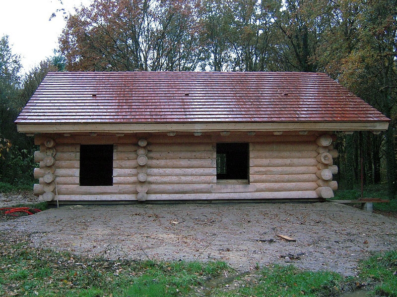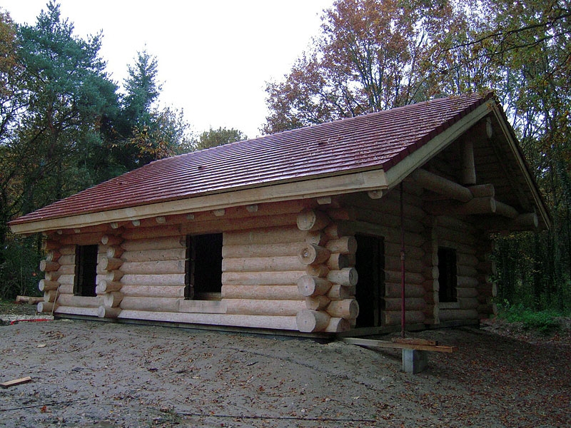 Hunting house in France. Manual cabin from a log with a diameter of 380 mm. The project is made in the traditional French style. Natural materials are used in the decoration.