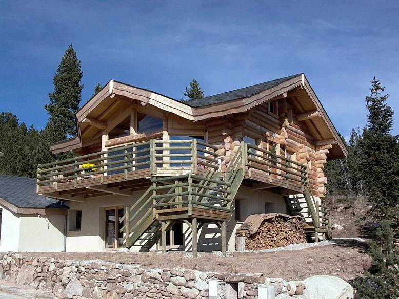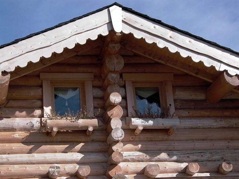 Log house with stone ground floor. Strict forms emphasize the charm of the log house.